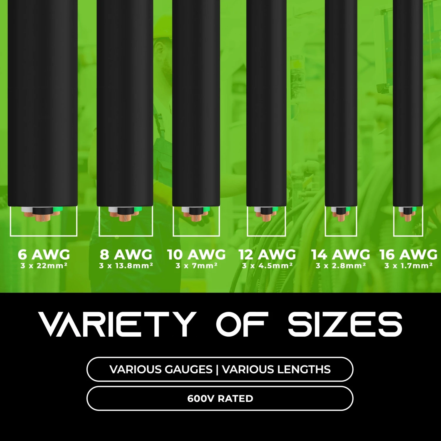 - Heavy Duty 12 AWG 600V SOOW (Service, Oil, and Water Resistant) cable is a type of electrical wire that is commonly used in industrial, commercial, and outdoor applications. It is insulated, and is covered by a durable rubber jacket that provides resistance to oils, acids, water, and chemicals, making it a durable and long-lasting option for harsh environments (-40°C to 90° Celcius).