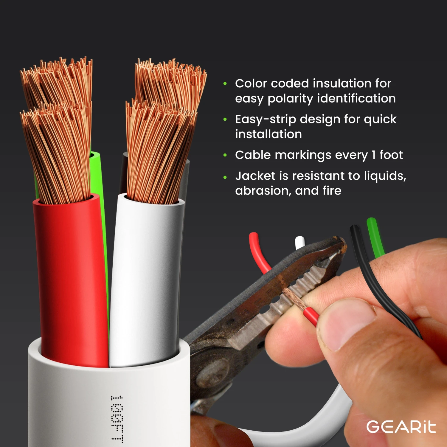 12 AWG In Wall Speaker Wire 4-Conductor Bi-Wire Cables – CL2 Rated – Oxygen Free Copper (OFC), White(Gearit 12 Awg In Wall Speaker Wire 4 Conductor Bi Wire Cables Cl2 Rated Oxygen Free Copper Ofc White)