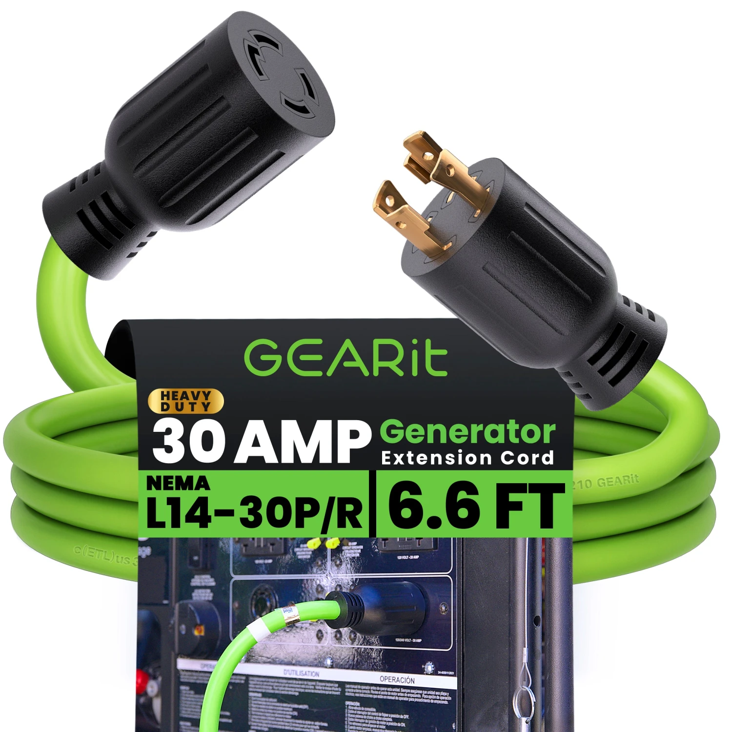 30 Amp NEMA L14-30 Generator Extension Power Cord(Gearit 30 Amp 250 Volt Generator Extension Cord Nema L14 30p To L14 30r Generator Power Cord)