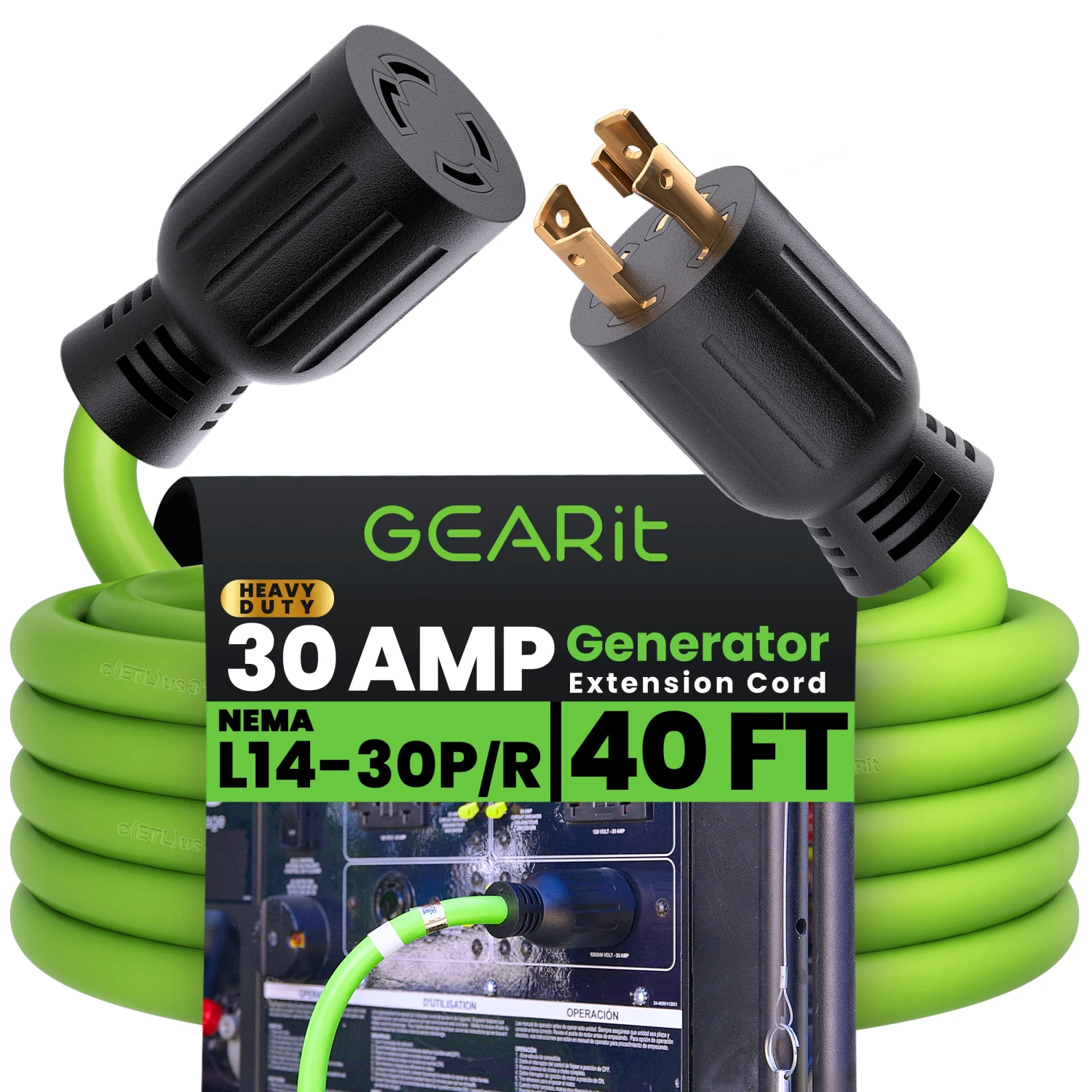 - PROFESSIONAL GRADE – Enjoy ultimate portability with our 40-foot, 30amp generator power cords, delivering reliable electrical power wherever you need it. Perfect for homes, appliances, emergency backup generators, or during power outages. Each cord bears the UL certification seal, ensuring top-notch safety and peace of mind.