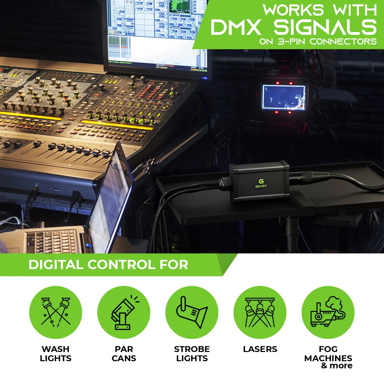 - 4 Separate DMX Control Signals – Control LED stage lights, DJ lights, fog machines and effects with up to 4 DMX signals over 3-pin XLR cables. These adapters allow you to use up to 4 different lighting controllers to control separate lights, while minimizing long cable runs from the control room.