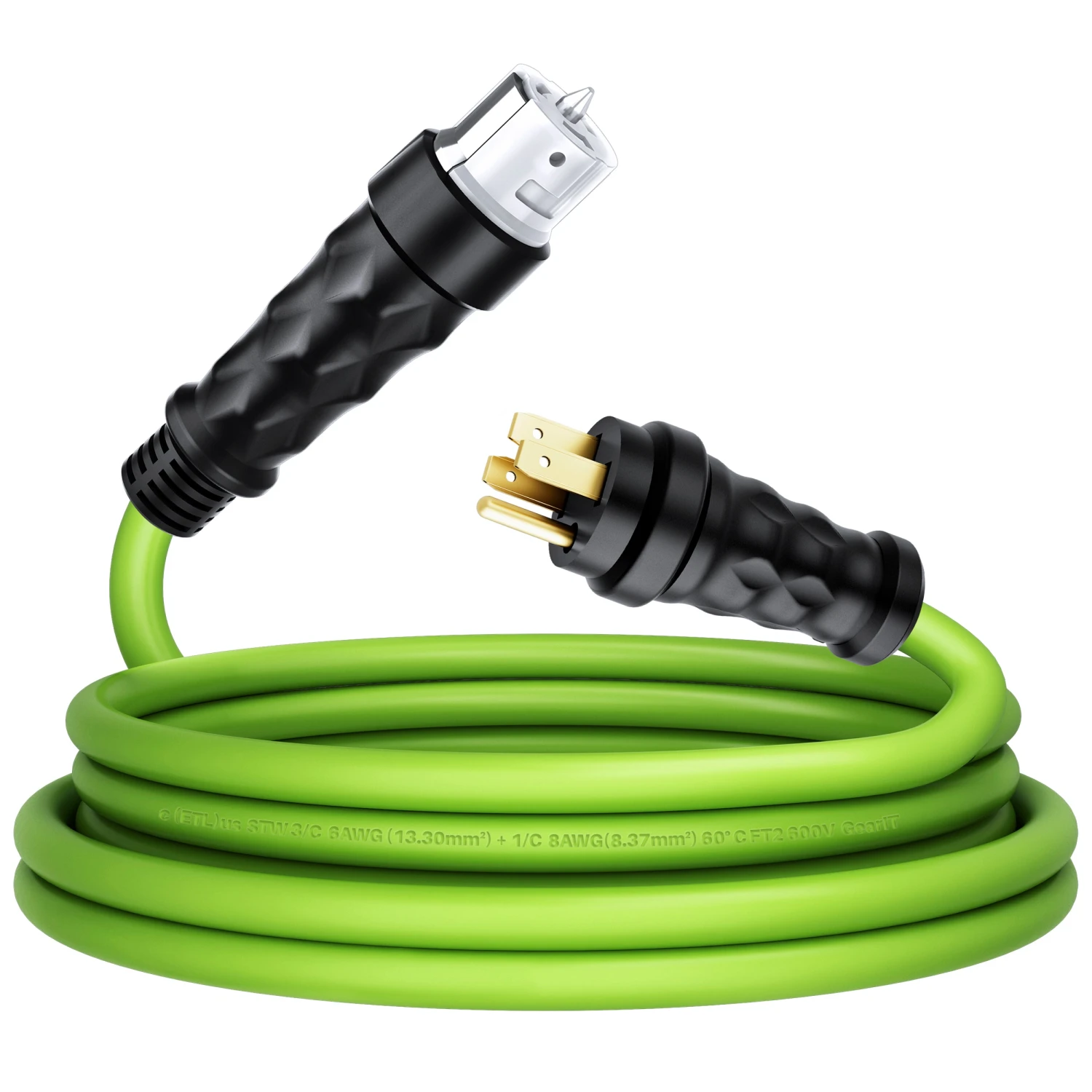 - PROFESSIONAL GRADE – STW 6AWG/3C+8AWG/1C stranded copper wire extension cord, support max 50 AMP loading, Max Rate 6250 Watt (125V) / 12500 Watt (250V).