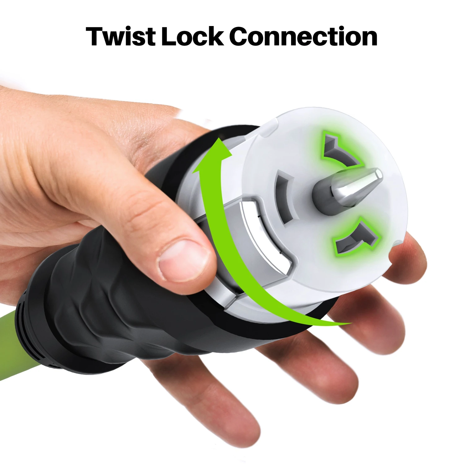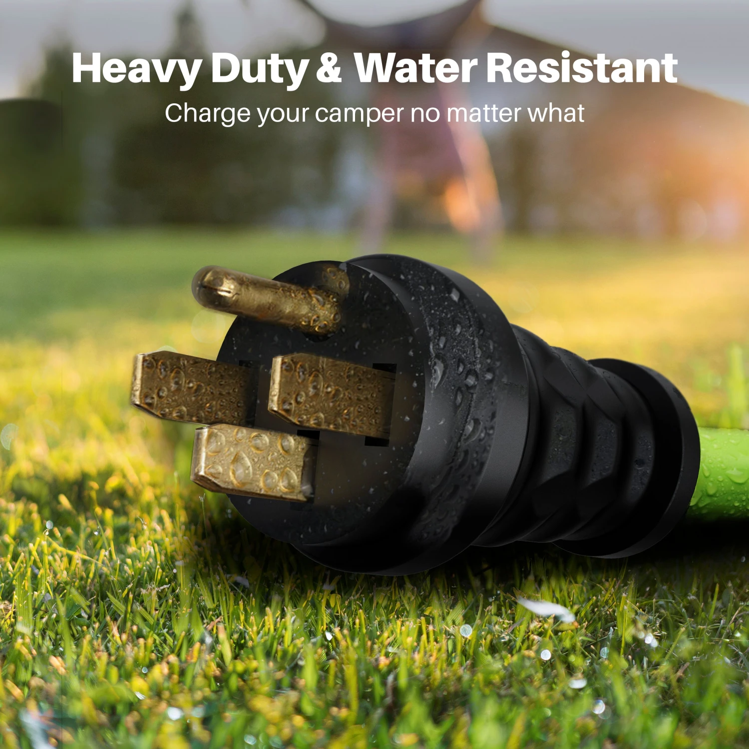 - DESIGNED FOR EASABILITY – Male end NEMA 14-50P cord is straight blade inline that safely and easily plug and unplug connector, female receptacle locking feature to ensures safe and leak free power conduction.
