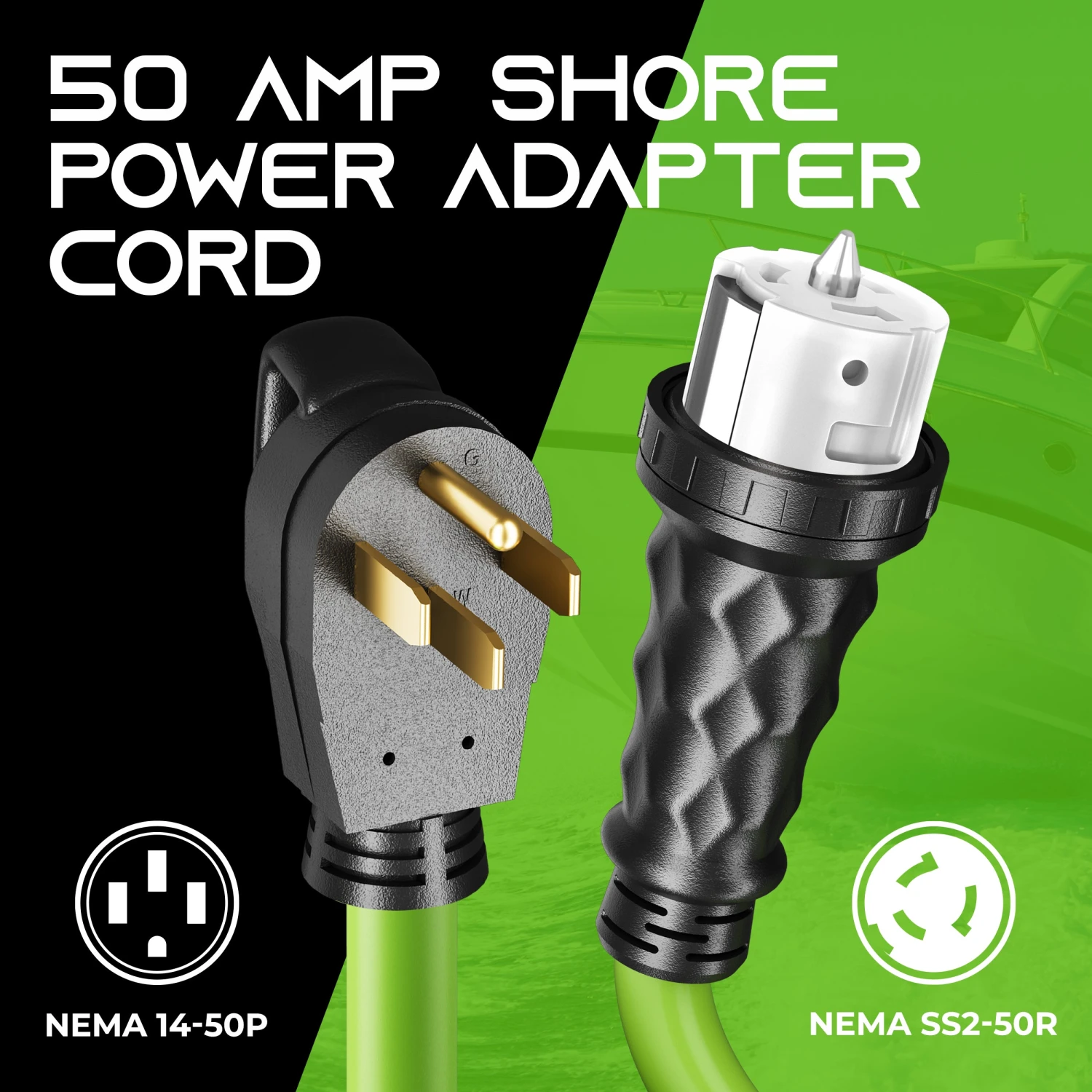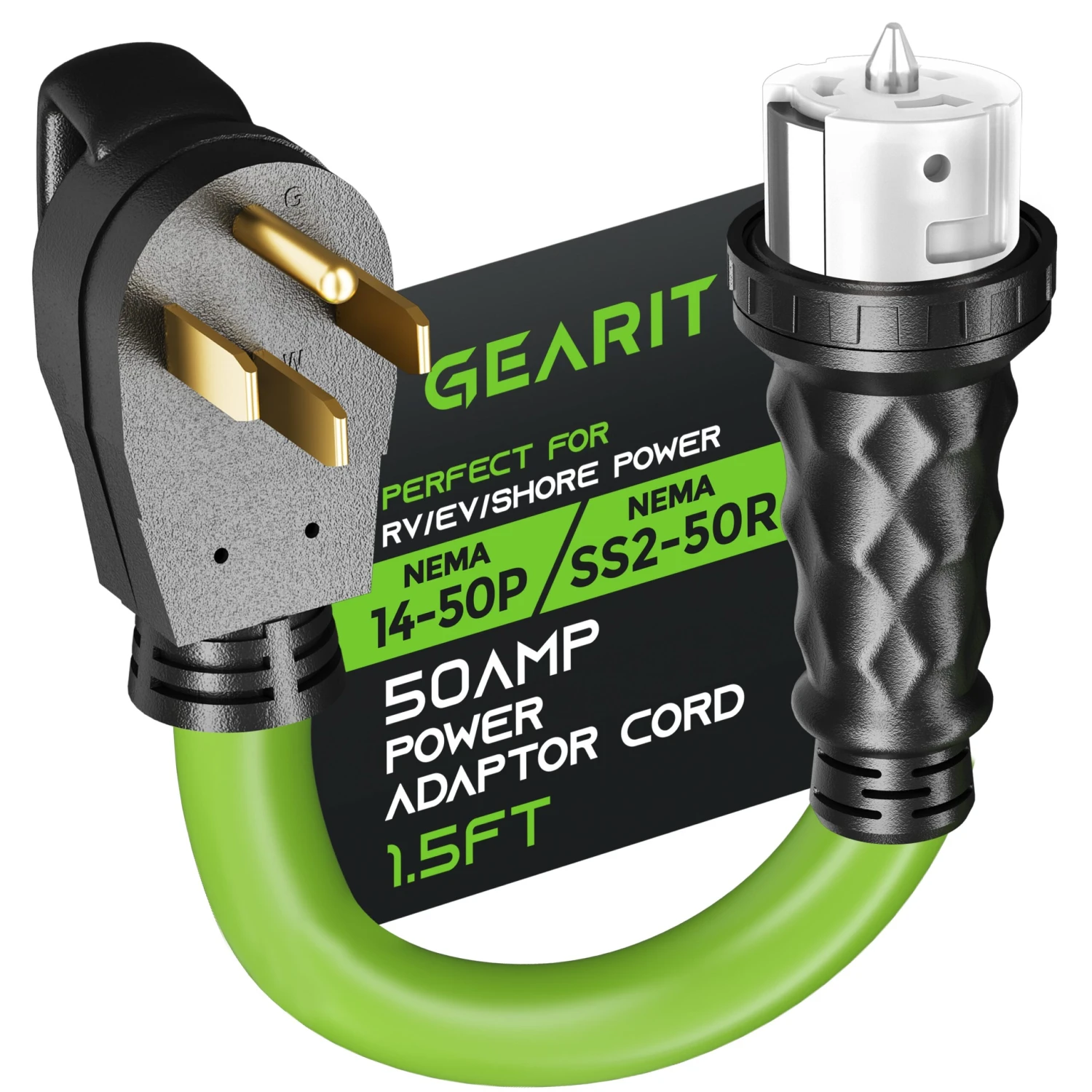 - Connect your shore power, RV, motorhome, trailer, or vehicle to campground or generator power with ease using GearIT’s NEMA 14-50P to SS2-50R 50A, 125/250V electrical power adapter cord.