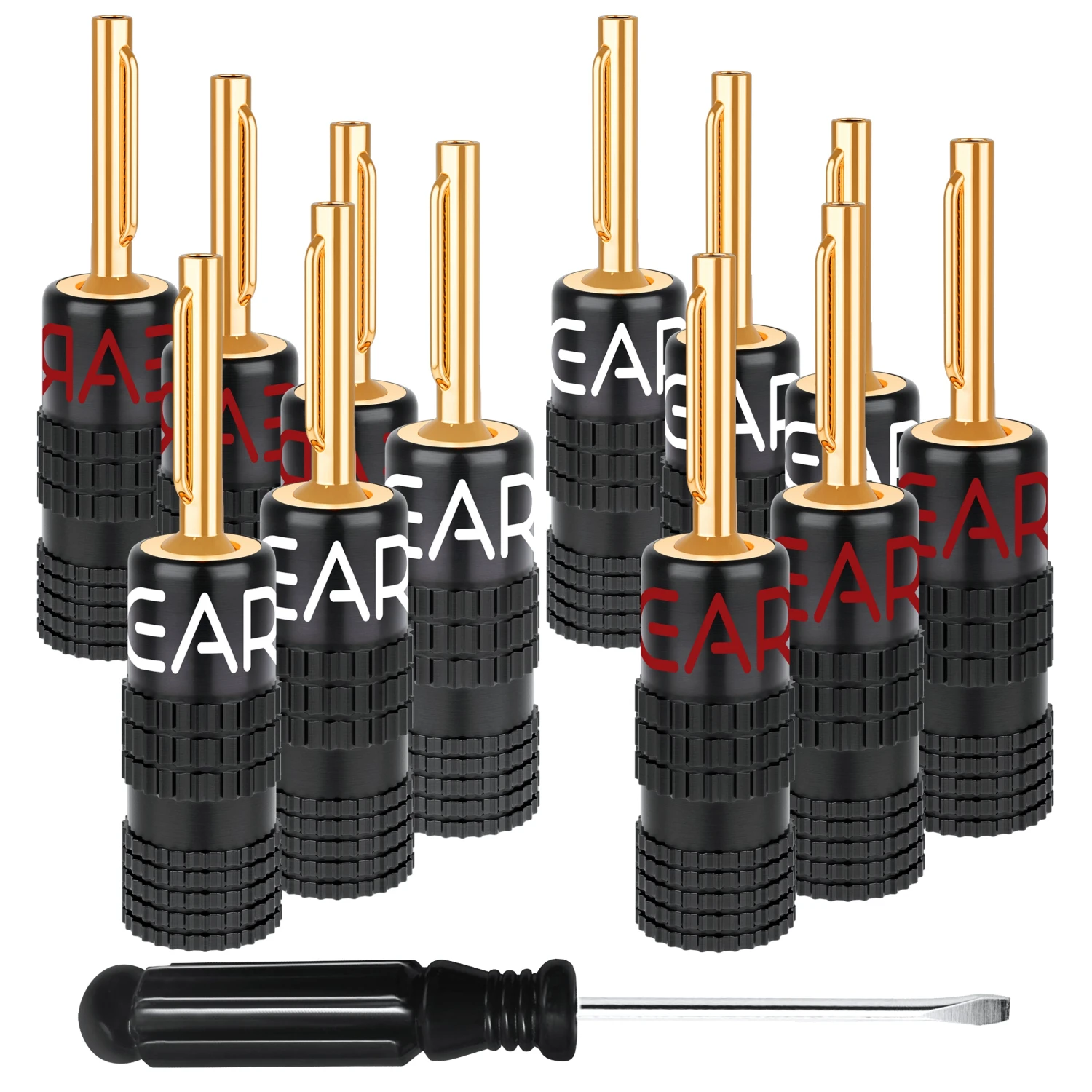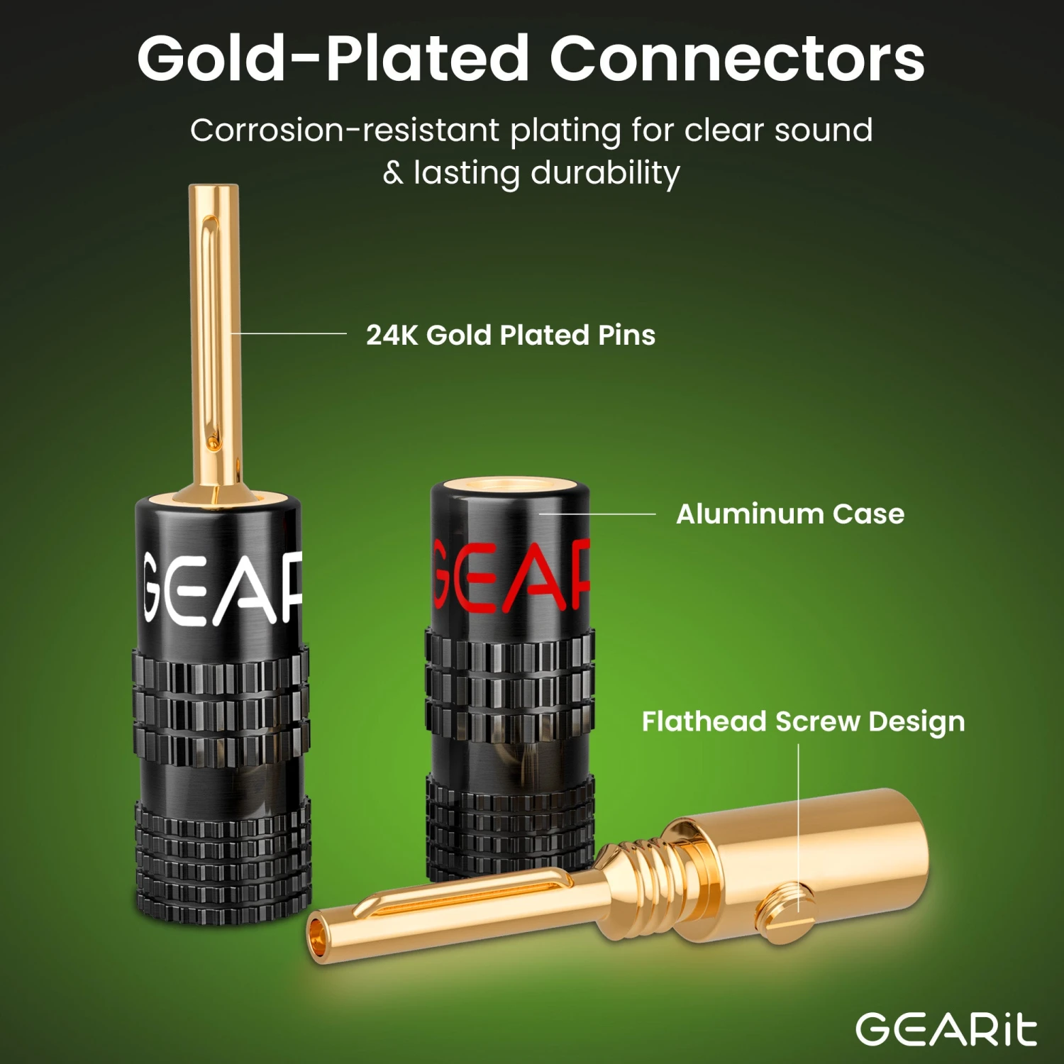 - PACKAGE CONTENTS – Each GearIT Speaker Plug pack includes six pairs (12 pieces) banana plug connectors made of pure copper, gold-plated pins, and non-magnetic. All GearIT Banana Plugs come with limited lifetime warranty.