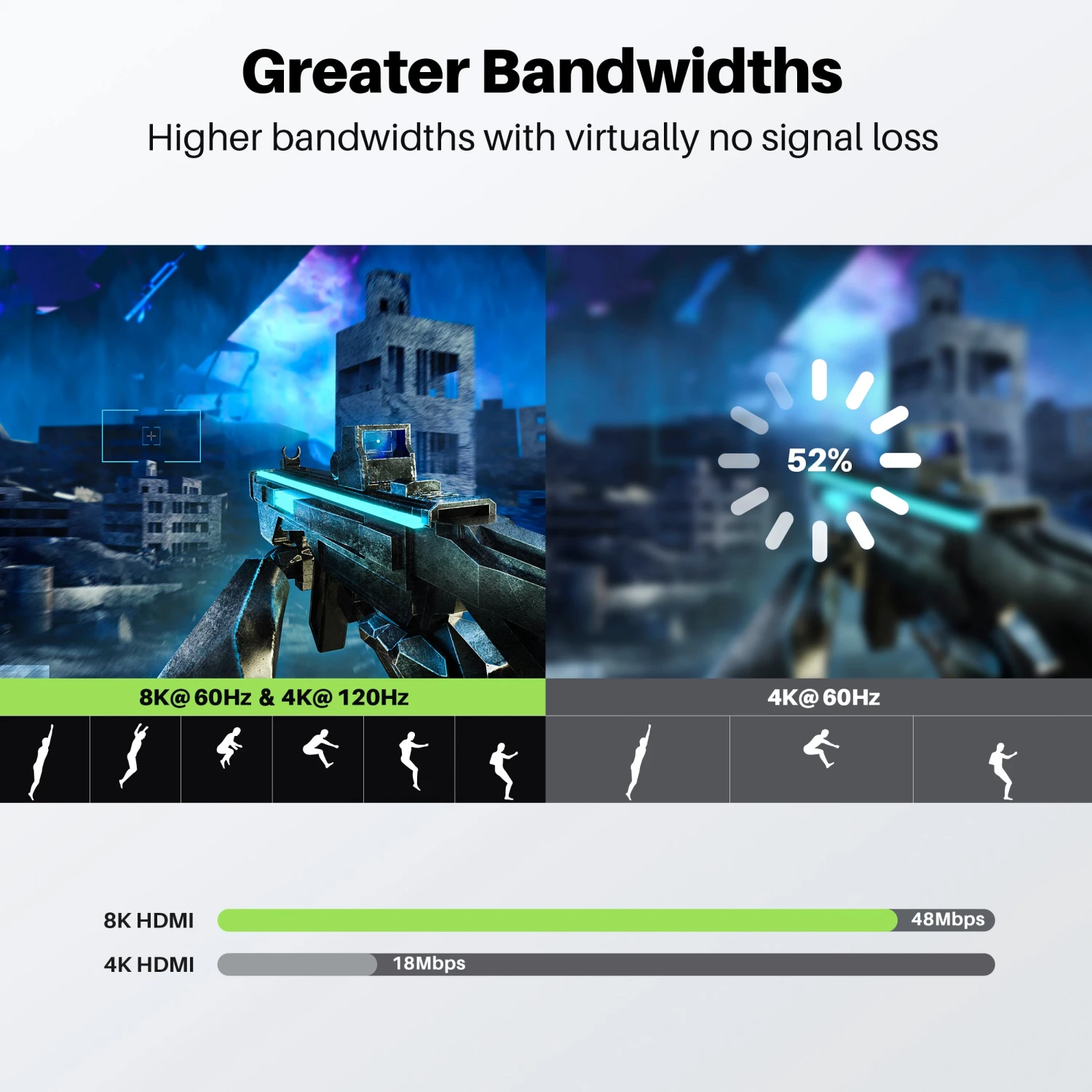 - UTRA HIGH RESOLUTION – There is no signal loss and compression, even for 8K signal transmission. Supports 8K Ultra HD resolution, 8K@60Hz, 4K@120Hz, Dynamic HDR, eARC, VRR, QFT, ALLM, QMS.