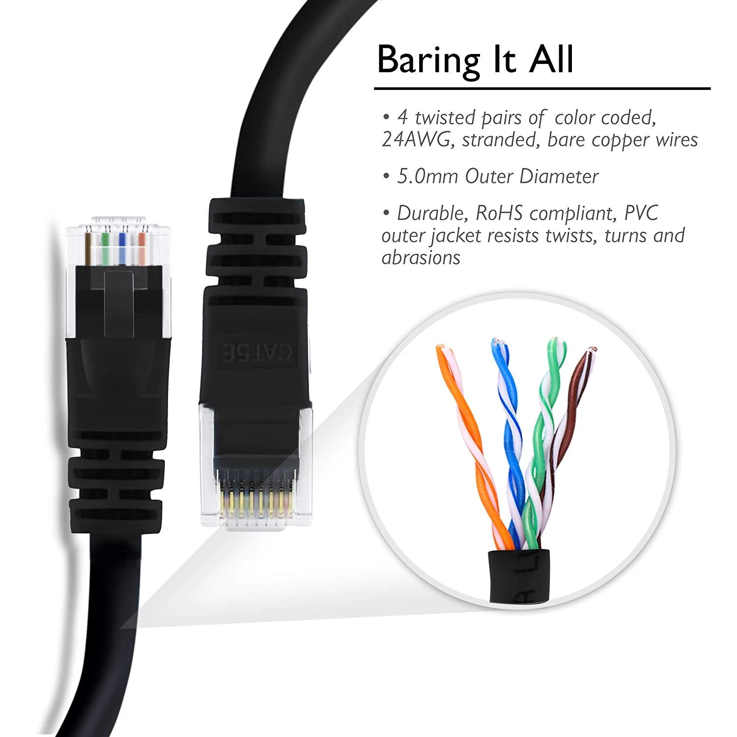 GEARit Cat5e Enhanced Snagless Network Patch Cable is universal for connectivity to all computer and network devices such as routers, switch boxes, network printers, network attached storage (NAS), VoIP phones, PoE and more.