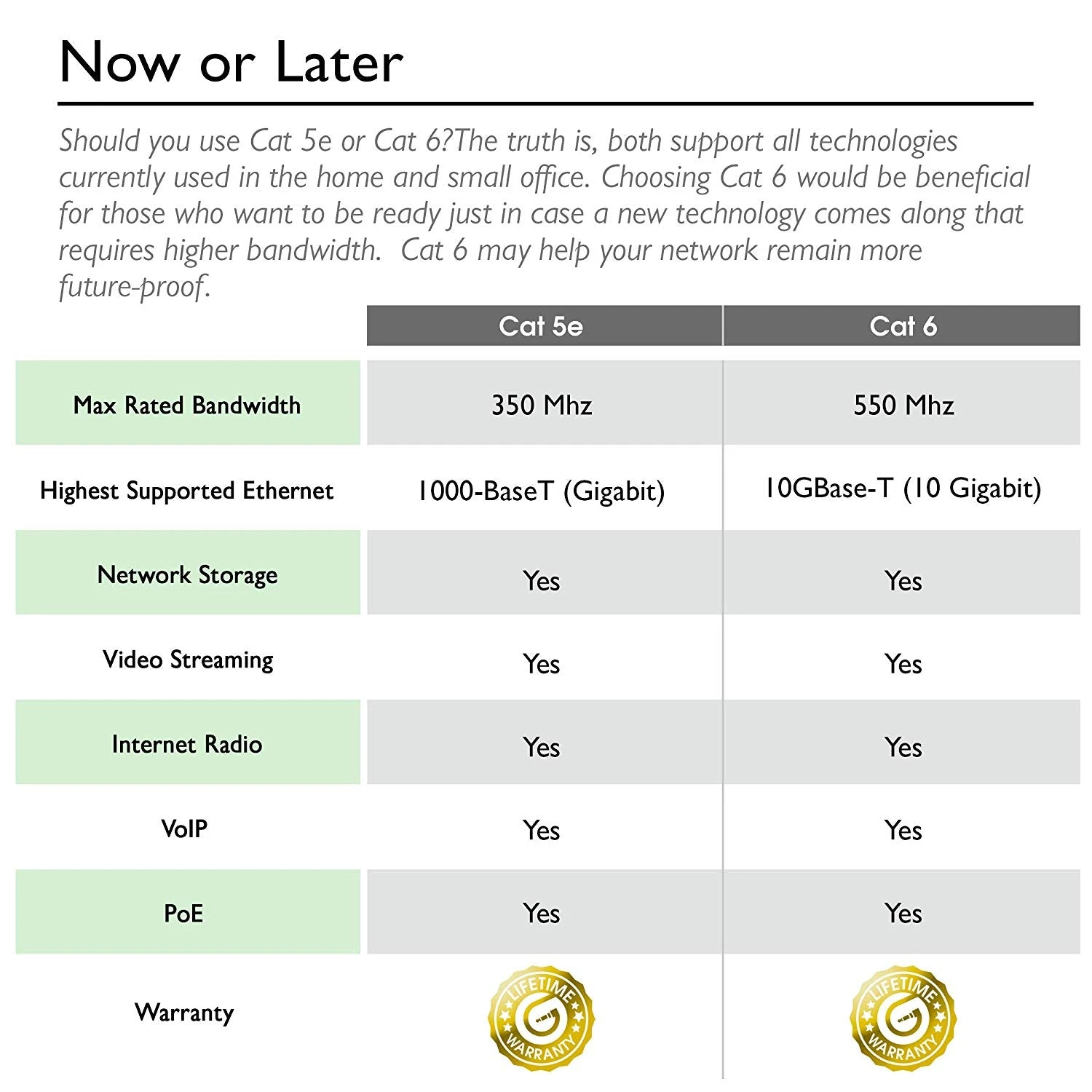- Premium quality category 5 enhanced cable, long-lasting materials, durable design, and a lifetime warranty for the price of a generic cable. ETL verified to ensure maximum reliability and compatibility