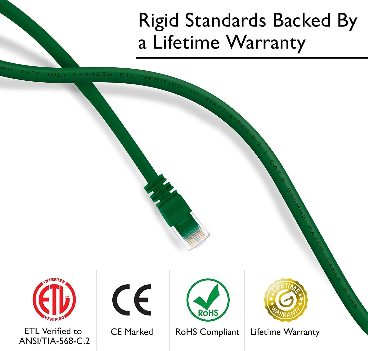 - High-precision, Cat 6, ANSI/TIA-568-C.2 compliant, ETL Verified, Ethernet LAN patch cable, pre-terminated with RJ45 connectors and available in a wide variety of colors for proper color coding