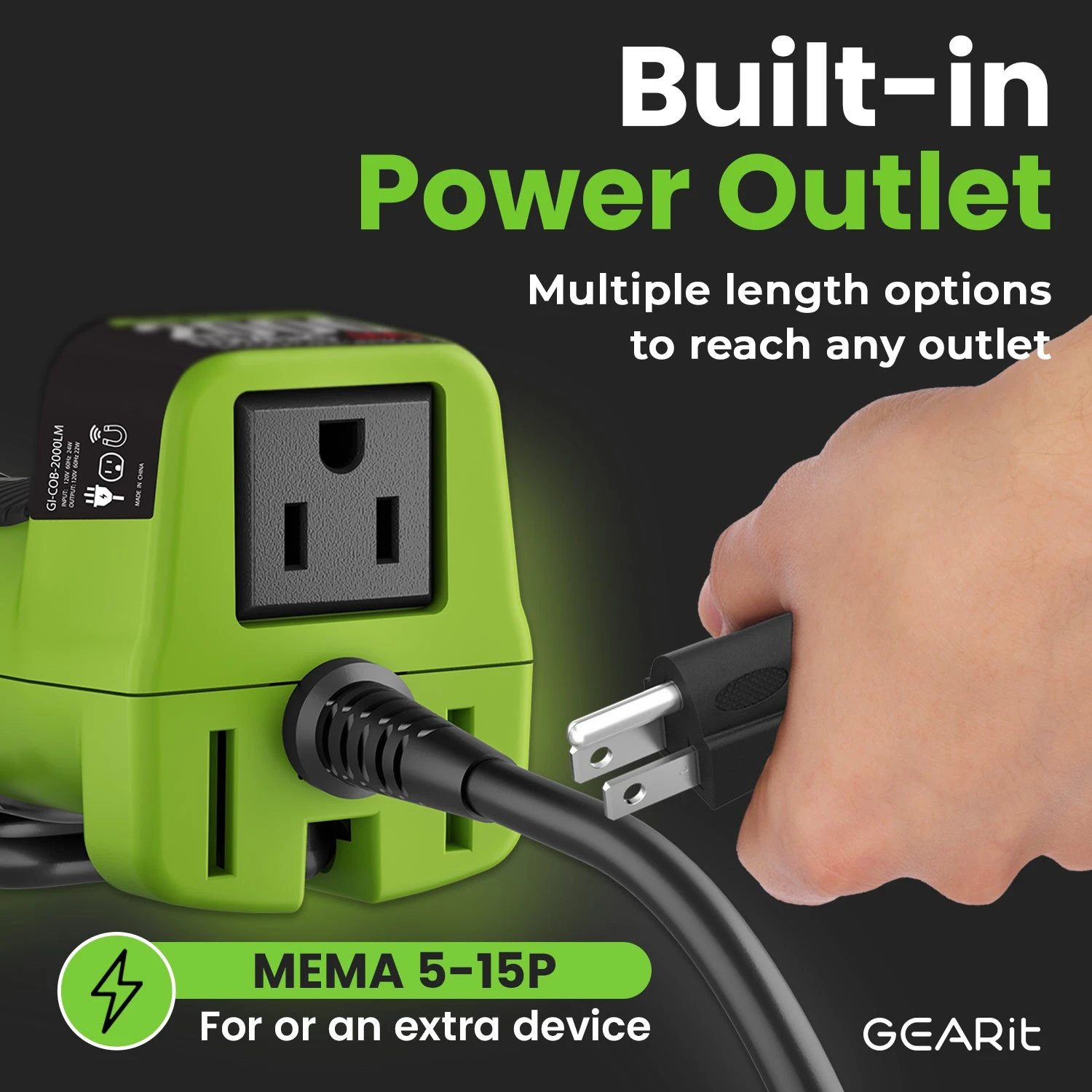 - EXTENSION OUTLET – Enjoy added convenience with a NEMA 5-15R AC outlet conveniently located on the bottom of the handle, allowing you to power an additional device with ease.