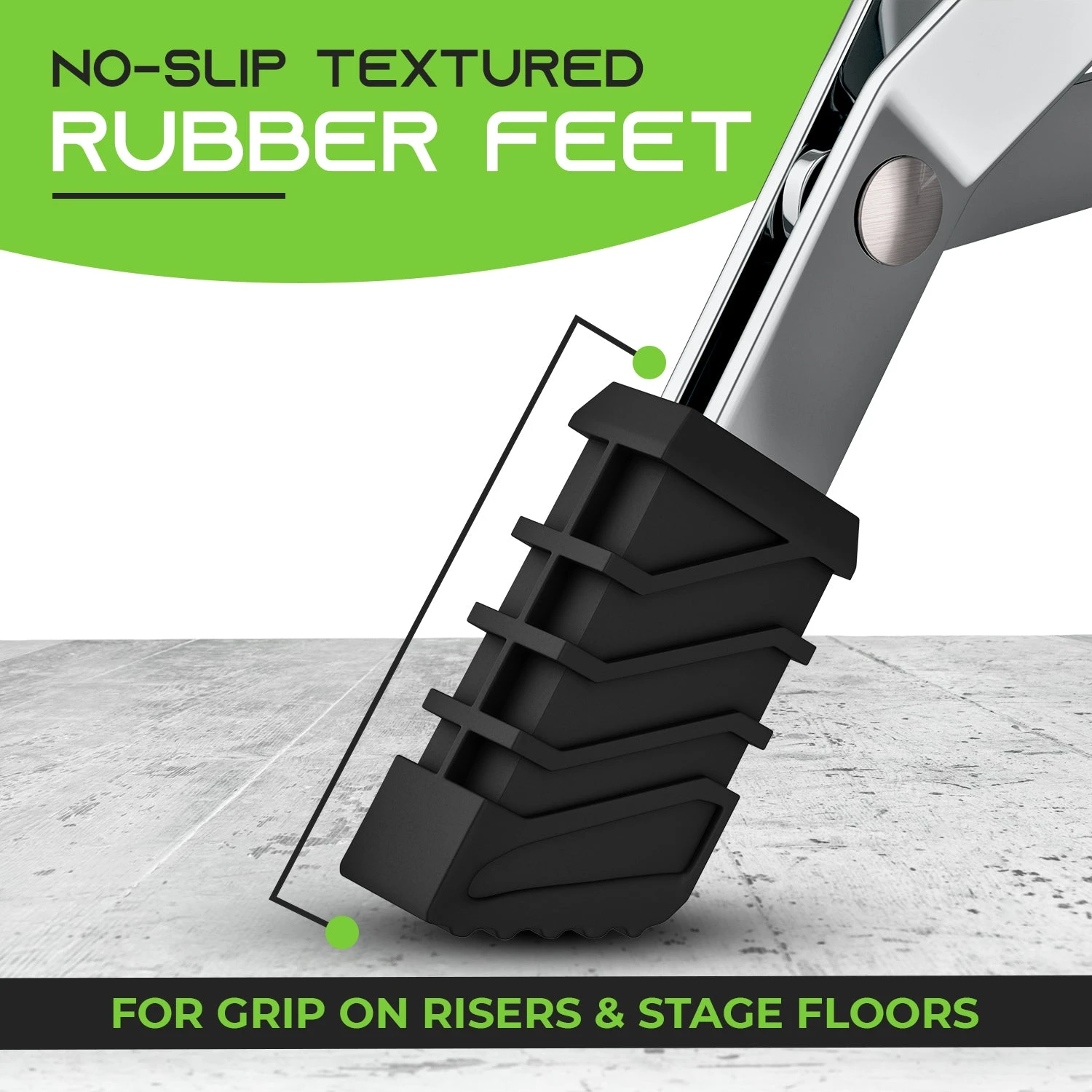 - Fitted With Anti-Slip Rubber Feet – It’s a common problem: stage floors and drum risers get slippery. Your throne starts to move when you stomp the kick. In addition to being dangerous, this movement interferes with your playing. That’s why this seat includes textured rubber feet that grip on common surfaces.