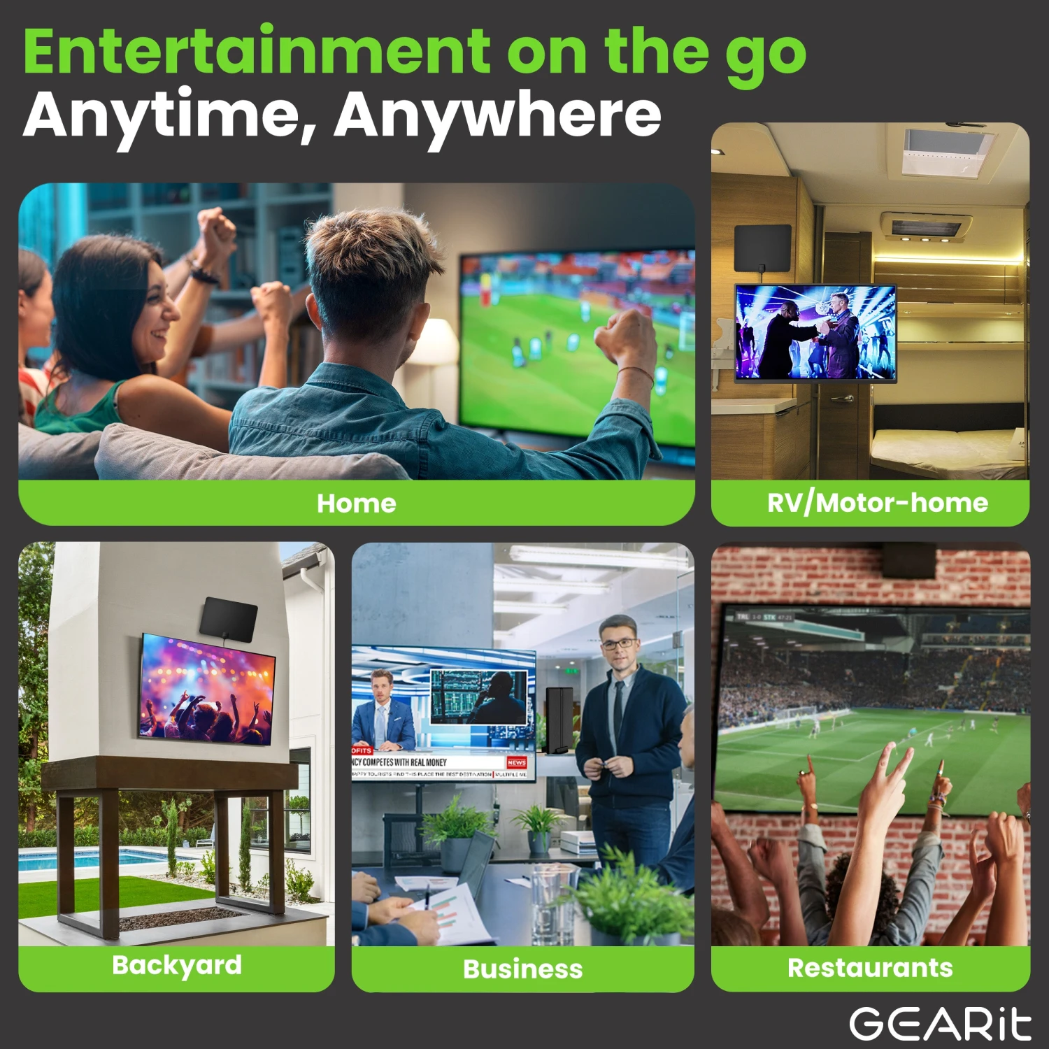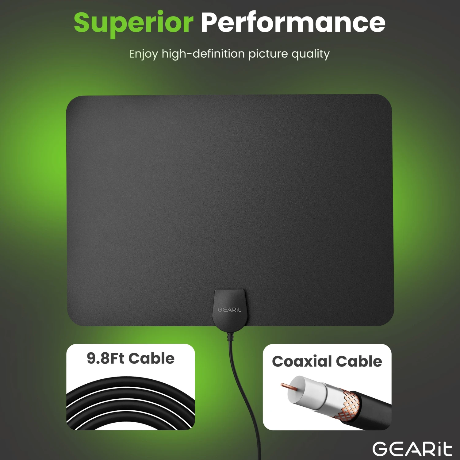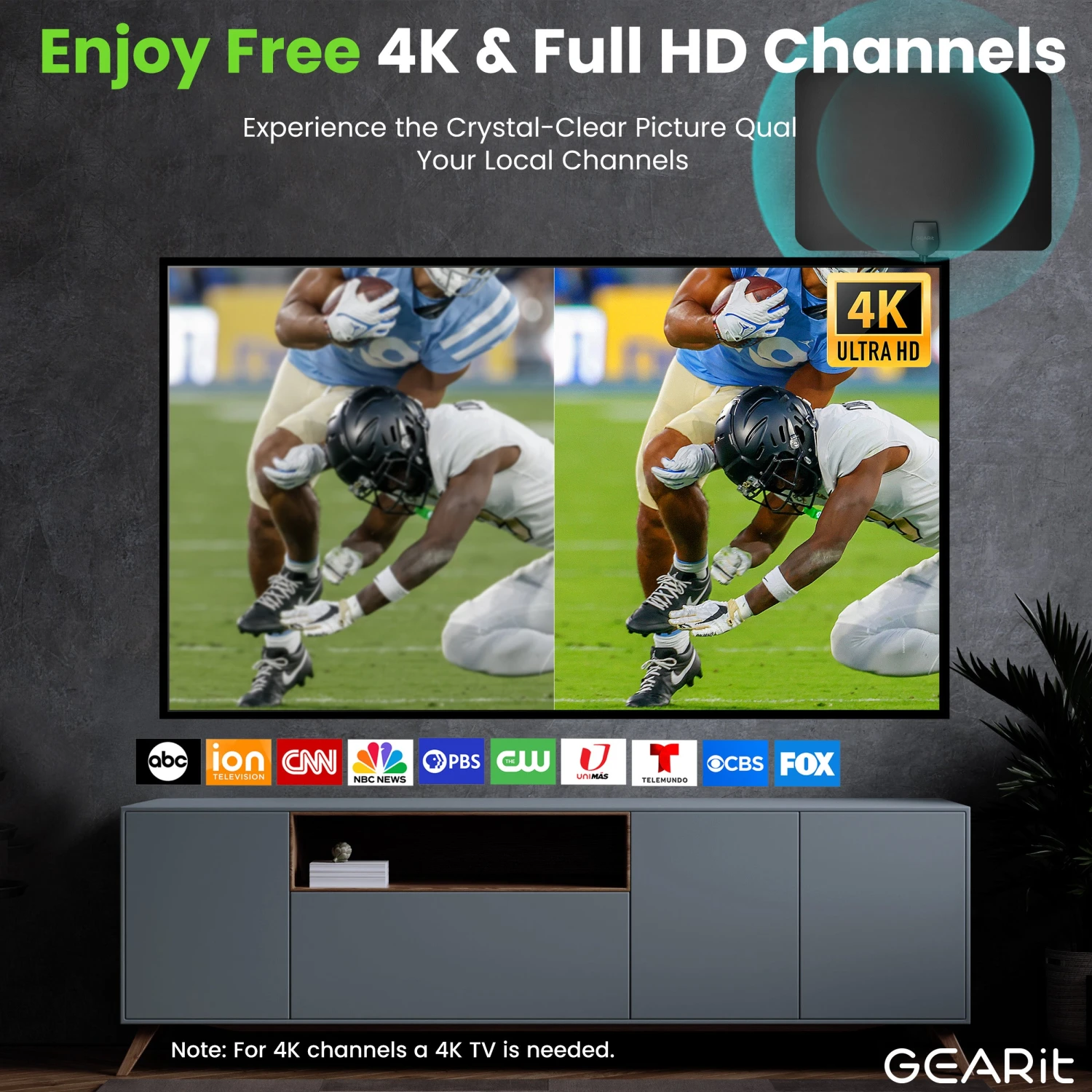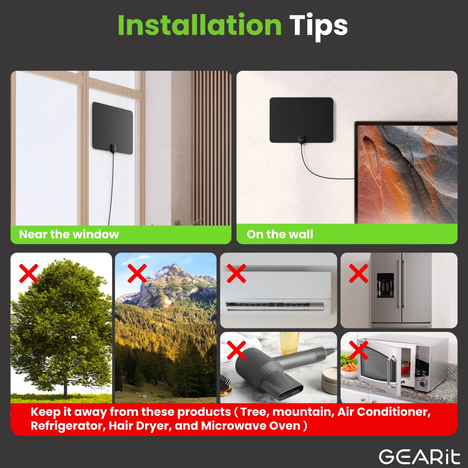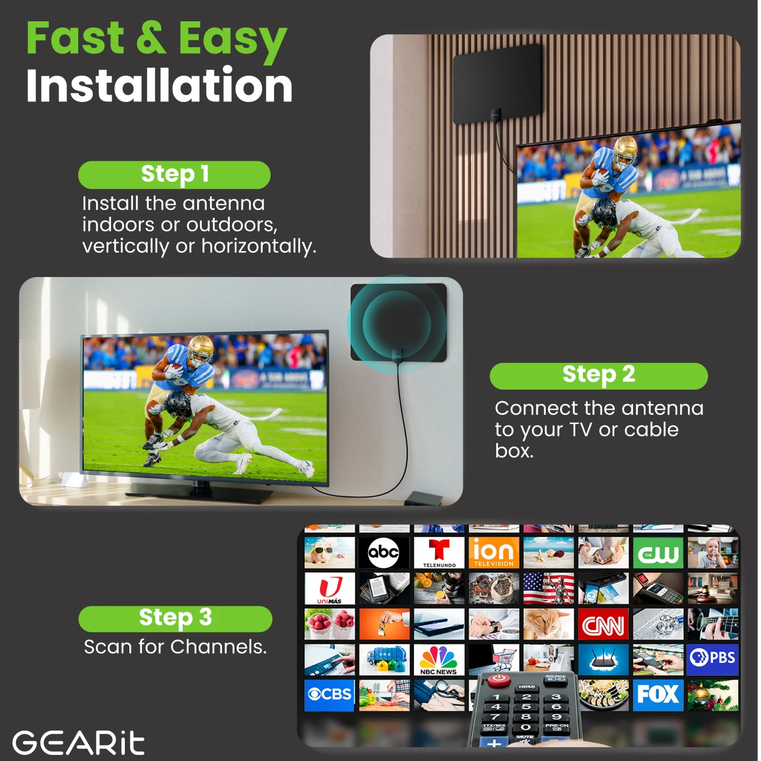 - Omni-Directional Reception: Enjoy high-definition picture quality with GEARit’s digital antenna for an indoor TV setup. Ensuring reliable omni-directional signal reception from any direction, enjoy your favorite shows without signal drops—even in bad weather.