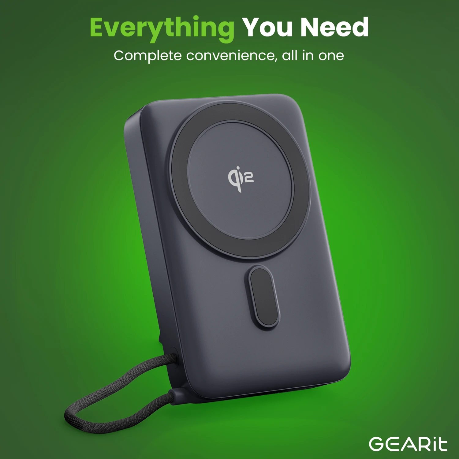 GEARit 10000mAh Qi2 Wireless Charging MagSafe Power Bank With Built-in USB-C Cable(Gearit 5 In 1 10000mah Power Bank Wireless Magsafe Charging With Built In Cables Copy)