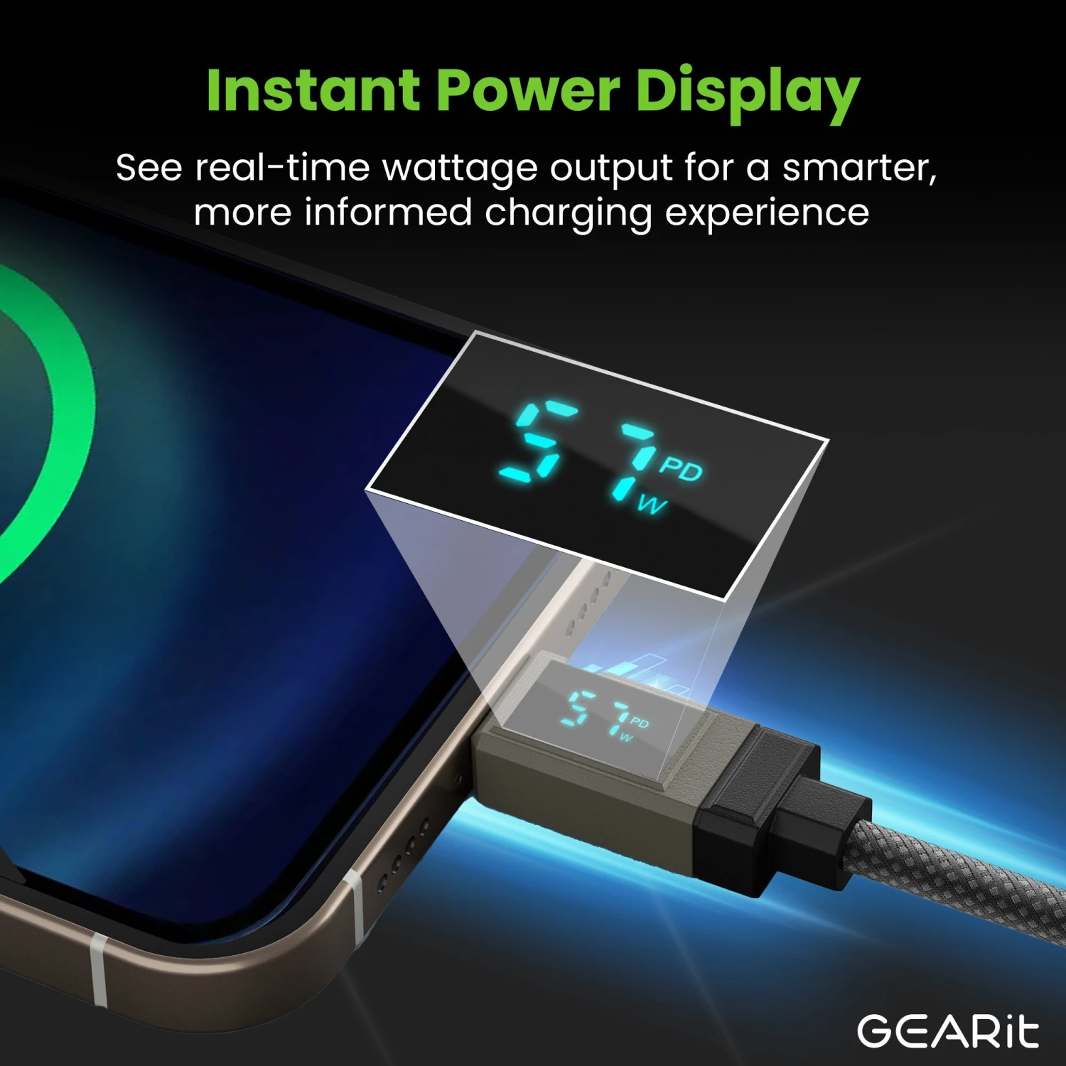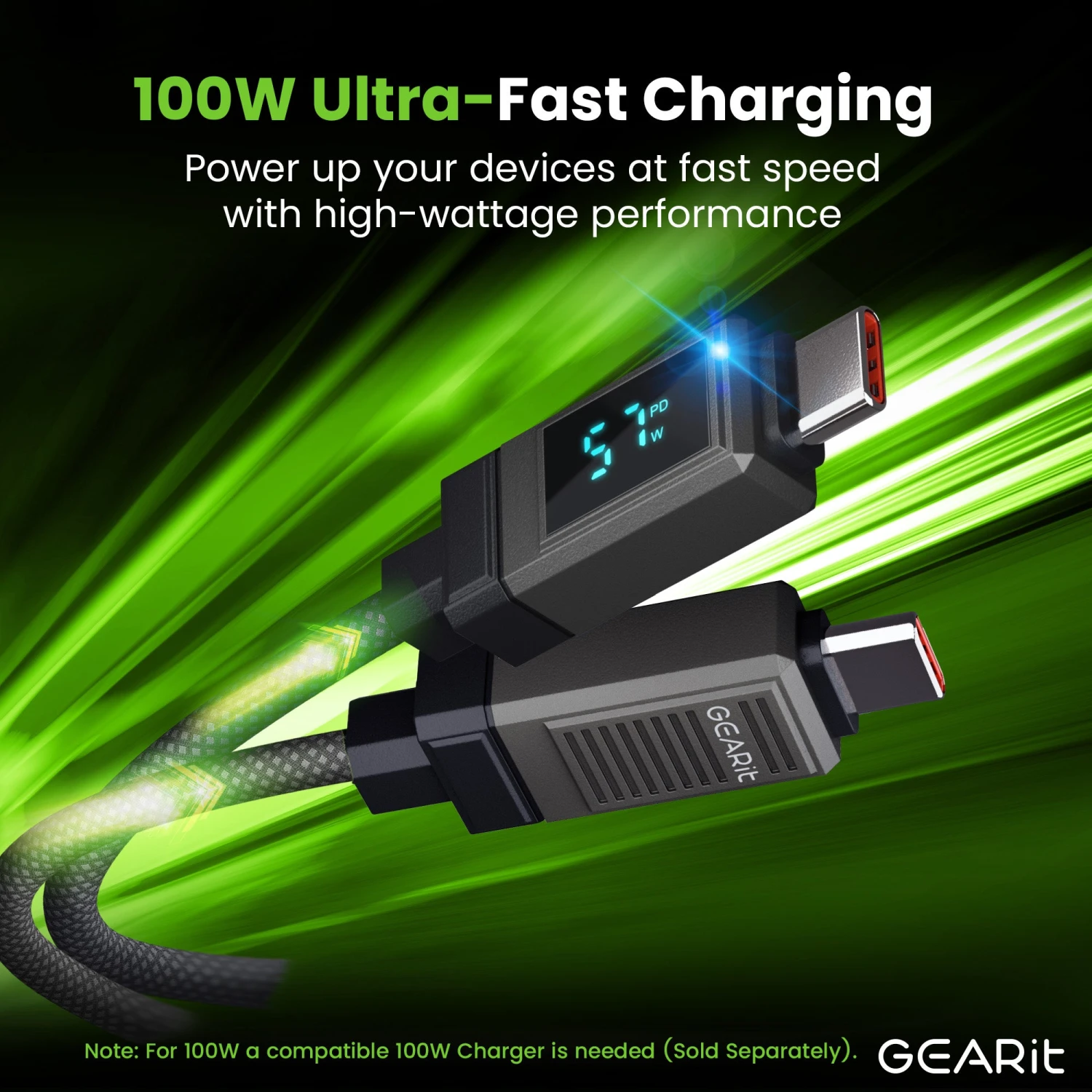 GEARit Lifestyle Series – 100W USB-C To USB-C Cable Fast Charging With Smart Display, 4 Feet(Gearit Lifestyle Series 100w Usb C To Usb C Cable Fast Charging With Smart Display)
