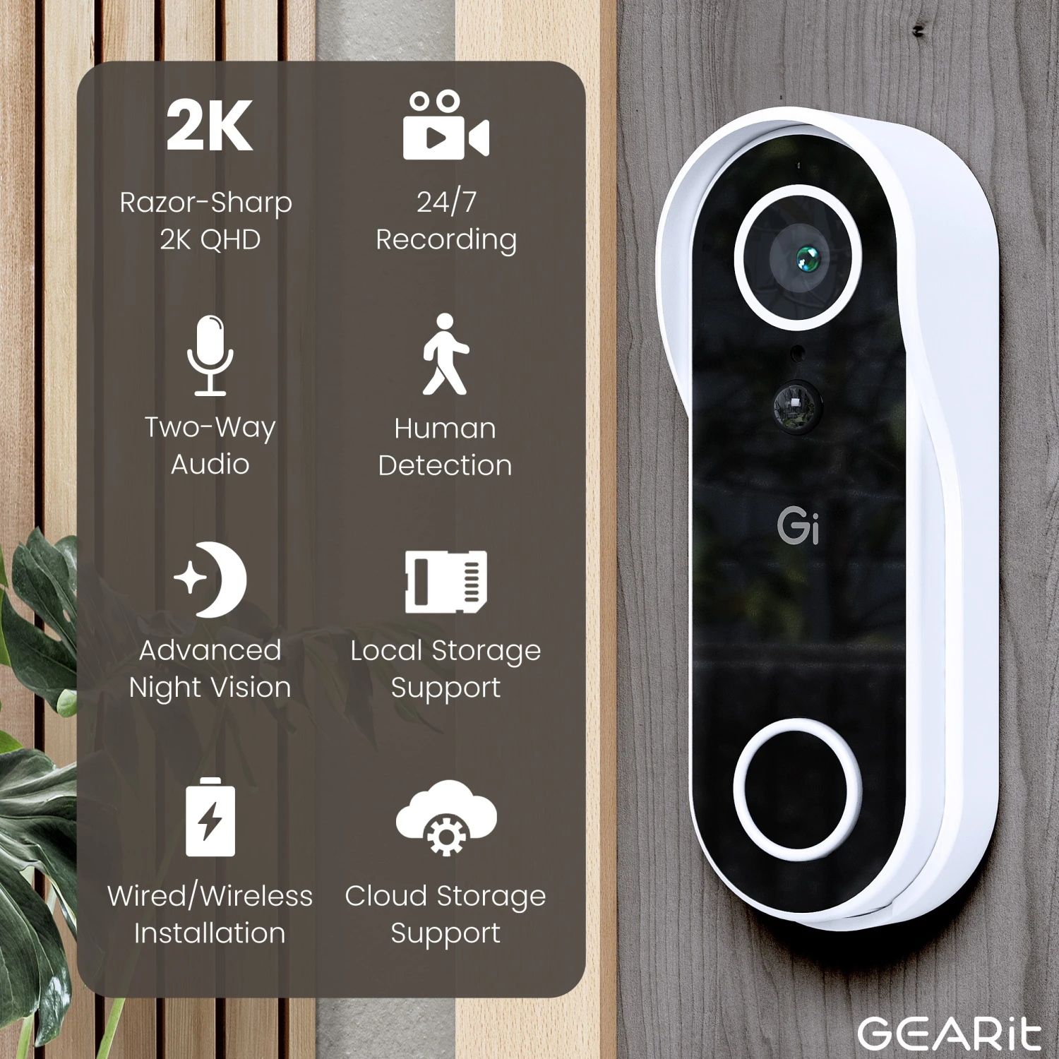 - GEARit Smart Doorbell Camera 2K QHD Video: Capture every detail day or night with 4MP resolution and advanced night vision. Ideal for those seeking a reliable doorbell camera wireless option, it ensures each event is captured with unmatched clarity and peace of mind.