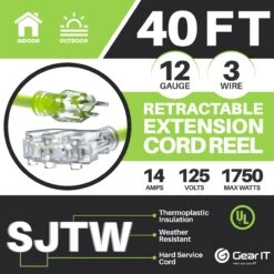 12AWG Retractable Cord Reel With Ceiling Mount, 40 Feet(Gearit 12 Awg 14 Amps 40 Feet Retractable Power Extension Cord Reel With Ceiling Mount Ul Listed 3 Outlets)
