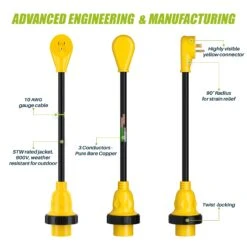 30 Amp 10/4 AWG NEMA 14-30P To 4x 5-20R STW Extension Power Cord(Gearit 30 Amp 10 4 Awg Nema 14 30p To 5 20r Outlet X4 Stw Generator Extension Cord)
