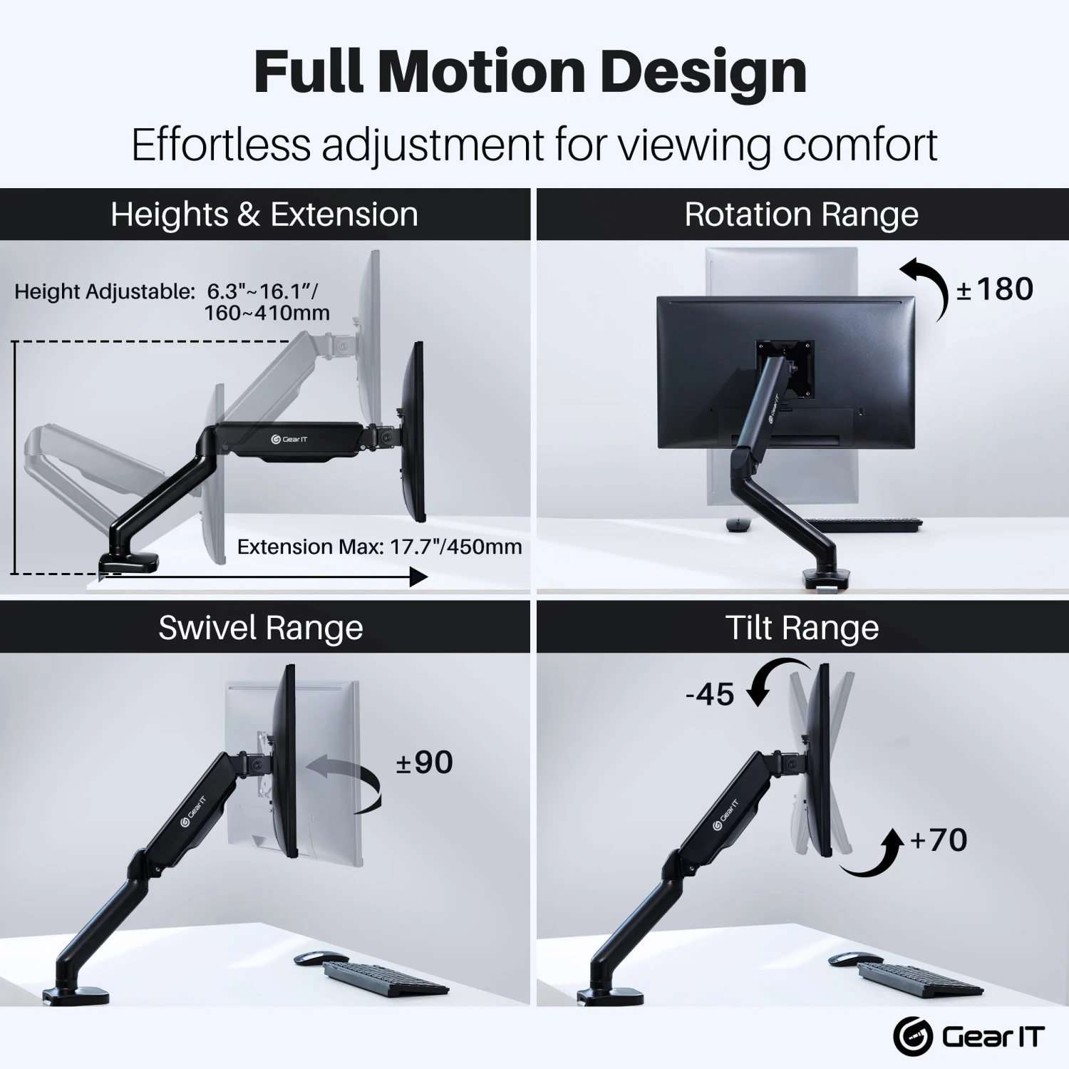 - [OPTIMISED VIEWING] Get the perfect viewing angle and eliminate any glare as the tilt can range from, +70° to -45°, can swivel ±90° horizontally and rotates +/-180° to enhance viewing experience.