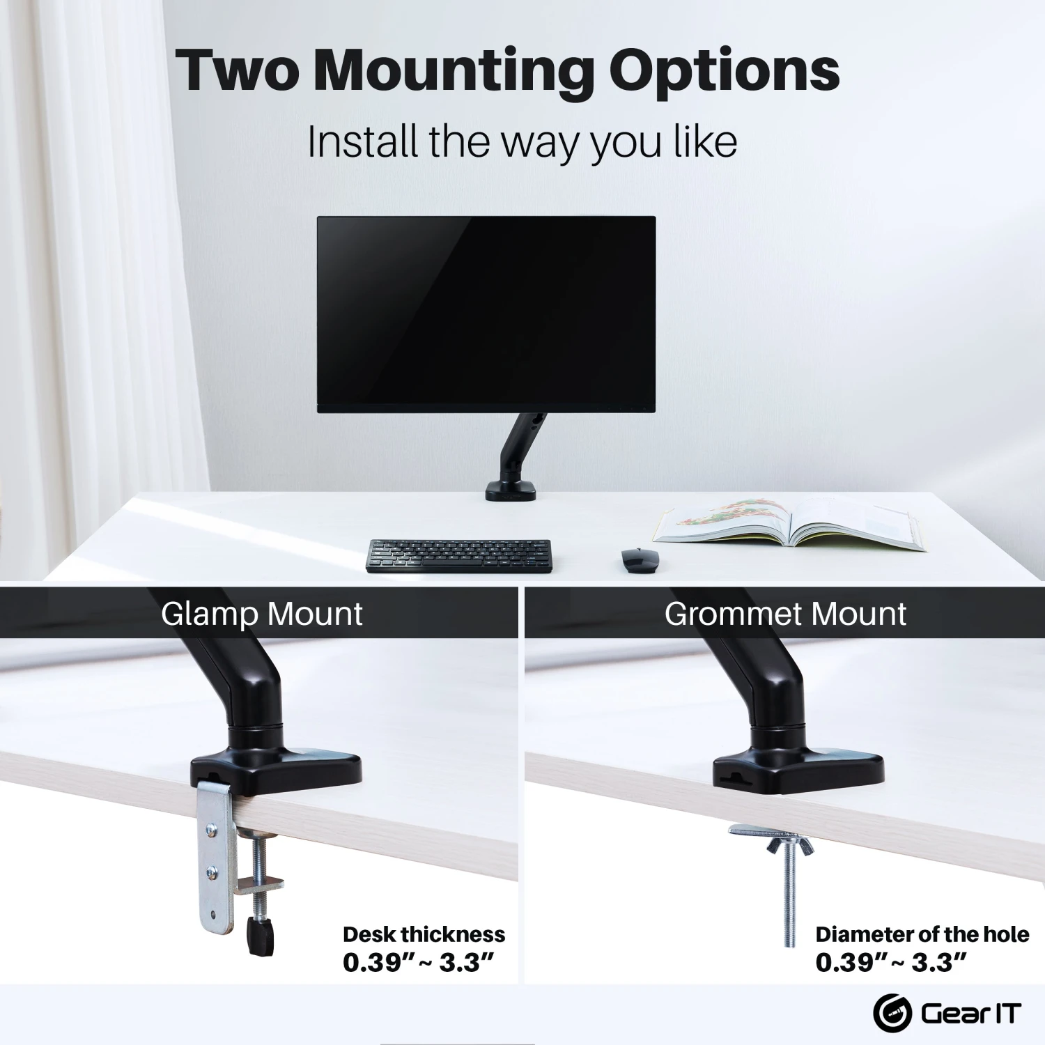- [EASY INSTALLATION] We include a step-by-step instruction and all the necessary hardware is provided with a removable quick release vesa plate designed for single-person without any hassle for clamp or grommet installation.